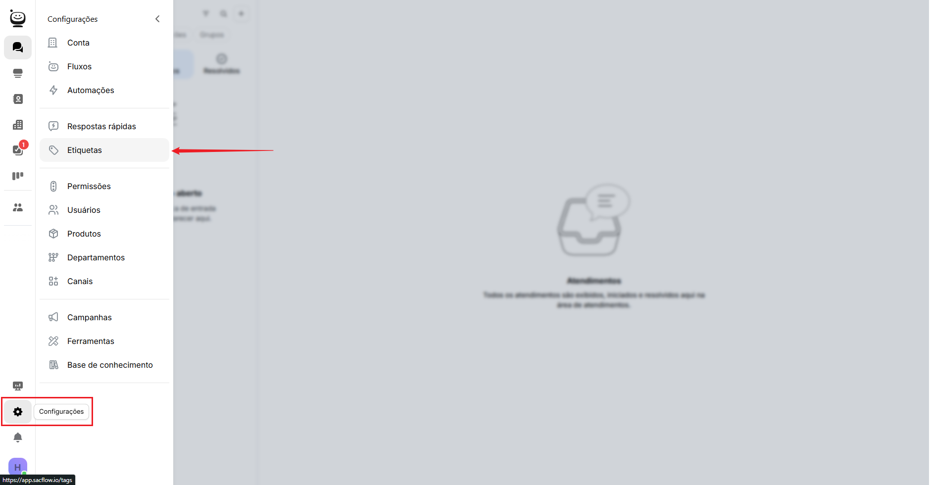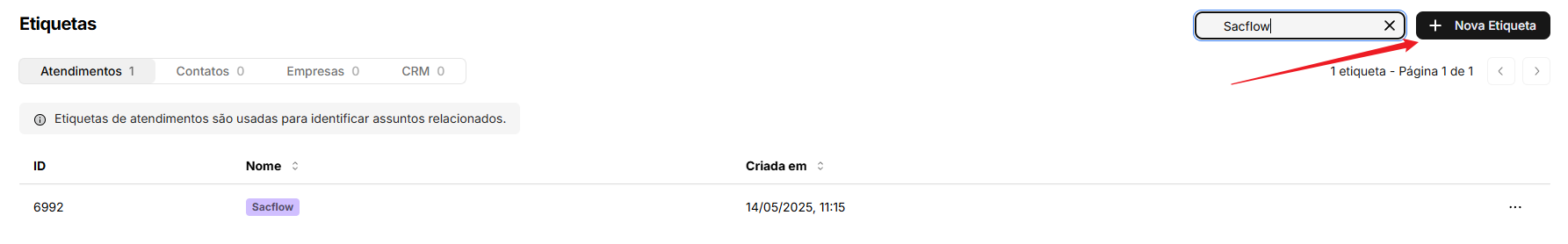 Como criar e editar etiquetas de atendimento no Sacflow