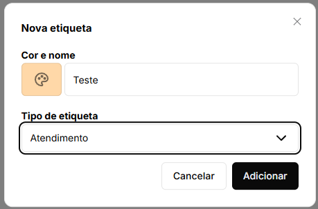 No canto superior direito da tela, clique no botão Nova etiqueta. Um modal será aberto para a criação da etiqueta.