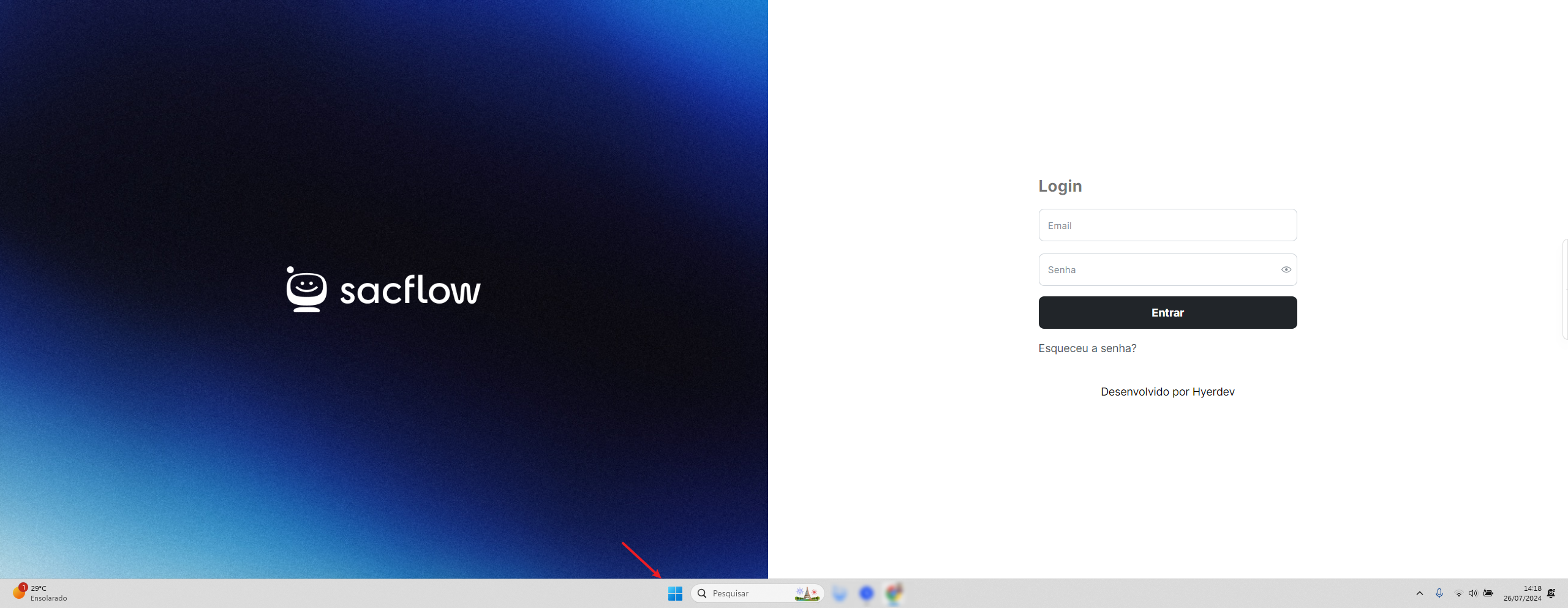 • Navegue até o site do Sacflow. atráves do link https://app.sacflow.io/login